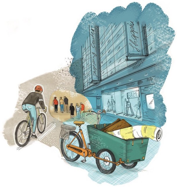In Mecklenburg-Vorpommern fördert cities.multimodal Maßnahmen, die verschiedene Verkehrsmittel miteinander verknüpfen und den Verzicht aufs eigene Auto erleichtern. So sollen im Rostocker Stadtteil Kröpeliner-Tor-Vorstadt multimodale Mobilitätspunkte entstehen, an denen Menschen unkompliziert Lastenräder und Carsharing-Autos ausleihen können. Die Zahl der Fahrzeuge auf Straßen und Parkflächen soll dadurch gesenkt werden, denn Experten schätzen, dass sich durch ein einziges Carsharing-Auto bis zu zehn private Pkw ersetzen lassen. Luftpumpen für Fahrräder, Ladesäulen für E-Autos und Schließfächer werden ebenfalls bereitgestellt.